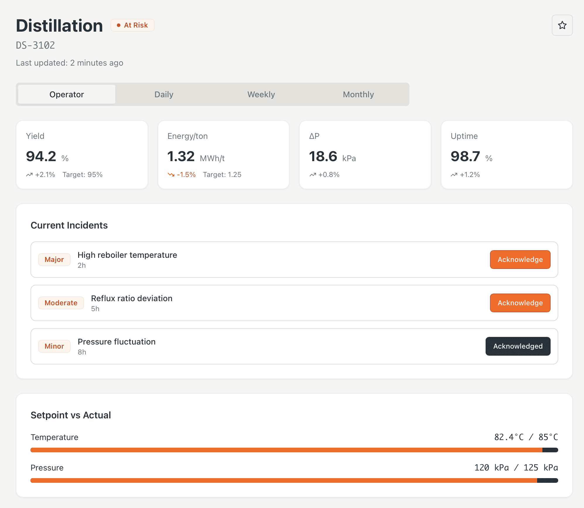 Eliminate costly losses caused by unnoticed process shifts, equipment failures, or inefficiencies. Instead of more alarms or complicated dashboards, enjoy reliable, straightforward assurance that your plant is operating at peak efficiency.
