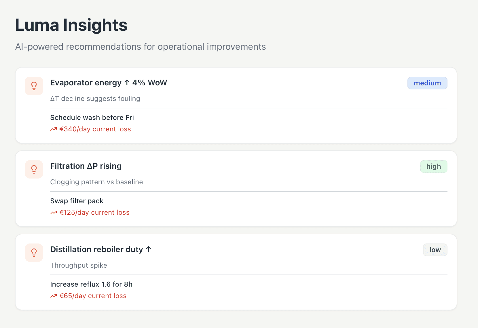 Luma spots subtle warning signs between “everything’s normal” and “critical failure,” enabling fast, high-value corrective actions.